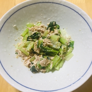 4. Cho lần lượt các nguyên liệu rau cải xanh (3), cá tuna, mayonaise, mentsuyu, đường, mè vào bát và trộn đều, ta được thành phẩm.